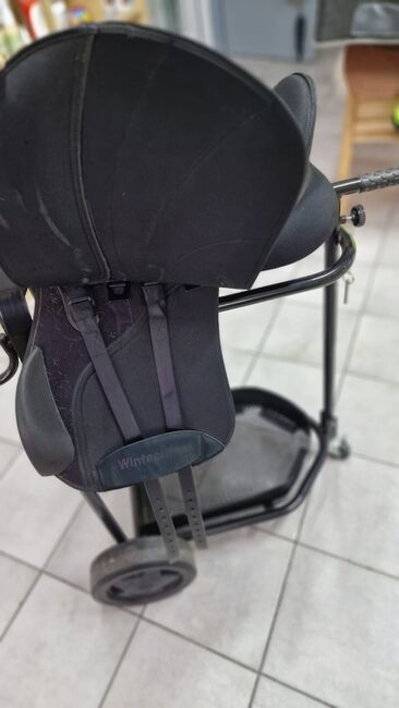Siodło jest używane, ale dobrze utrzymane i jest w bardzo dobrym, funkcjonalnym stanie. Było regularnie czyszczone i pielęgnowane. Trener założył je ponownie do kontroli, dlatego na zdjęciach nadal widać kilka puchów pleśni. Zostały odkurzone!