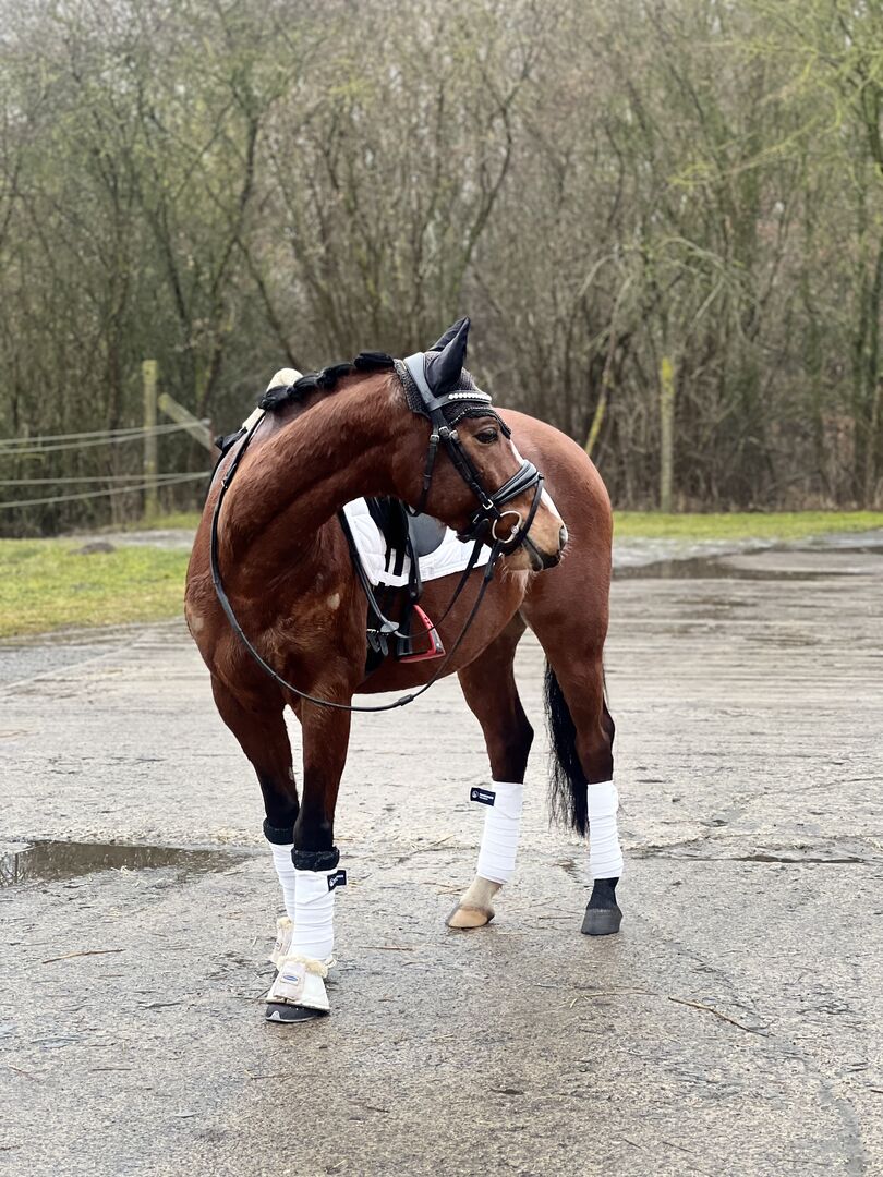 Nasz ośmioletni wałach rasy kuc niemiecki to prawdziwy wszechstronny wierzchowiec o wielkim sercu i wspaniałym charakterze. Dzięki swojej uroczej naturze, chęci do nauki i zrównoważonemu temperamentowi inspiruje zarówno w codziennej obsłudze, jak i pod siodłem.