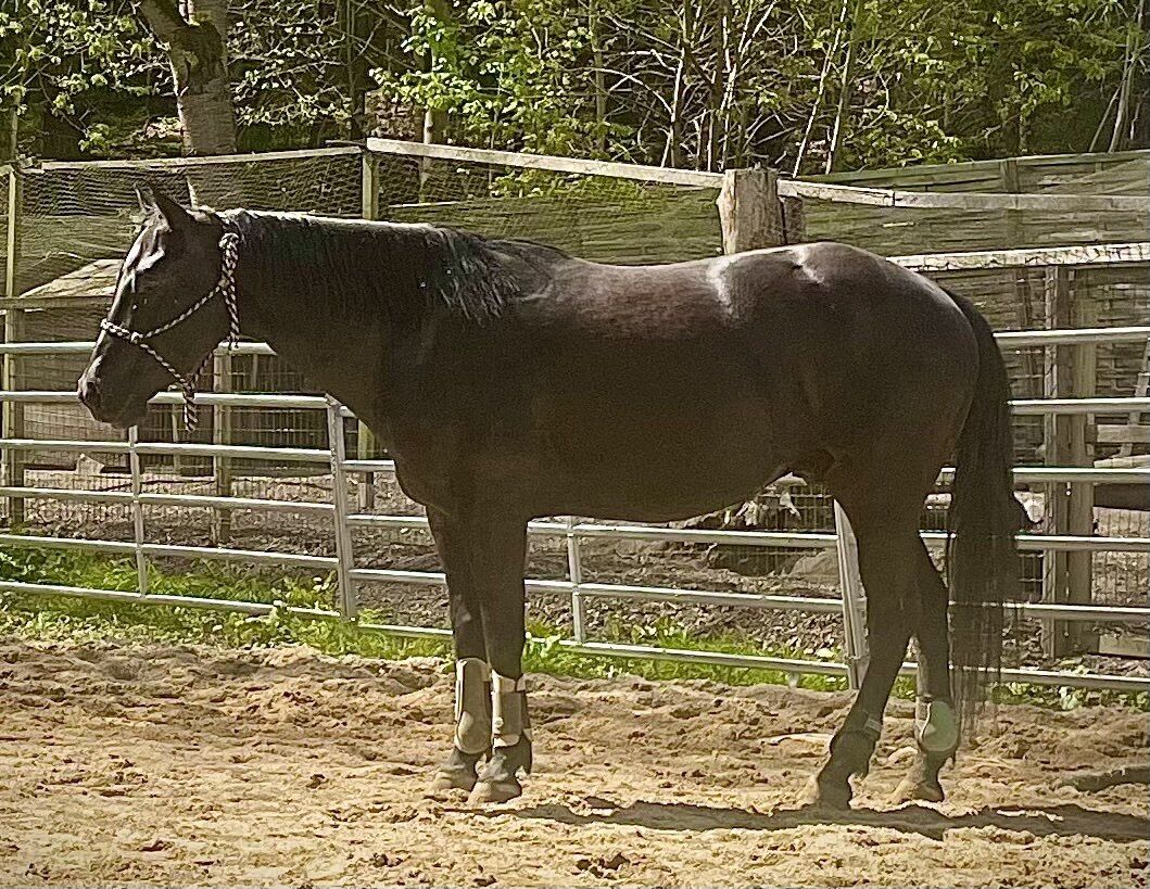 TWÓJ King Charly - piękny, prawidłowo zbudowany i bardzo zdrowy wałach rasy Quarter Horse (ur. 2019) o wzroście ok. 153 cm w kolorze czarnym. Ten młody wałach pochodzi ze starej, sprawdzonej linii koni ranczerskich (rodowód King) i imponuje dobrym, mocnym fundamentem, bardzo dobrą jakością ruchu i wygodnymi chodami. Charly'emu pozwolono dorastać w spokoju i łagodnie go wprowadzono - obecnie jest jeżdżony zawodowo i stale trenowany. Opanował podstawowe manewry czyszczenia, zna bydło i wychodzi sam oraz w grupach. Jego charakter sprawia, że jest bardzo zorientowanym na ludzi, otwartym i wrażliwym koniem. Absolutnie cudowny w obsłudze. Naprawdę najmilszy i najbardziej kochany koń, z sercem na właściwym miejscu. Bardzo chętny do nauki i utalentowany, ale także wrażliwy i delikatny. Zna życie w otwartej stajni w mieszanym stadzie i jest tam nieskomplikowany. Ten utalentowany wszechstronny koń jest idealny zarówno do zawodów, jak i jako niezawodny partner do rekreacji - ale bardziej w doświadczonych rękach, które docenią jego wspaniały charakter. Naprawdę świetny koń, który imponuje zarówno swoim rodowodem, jak i postawą!