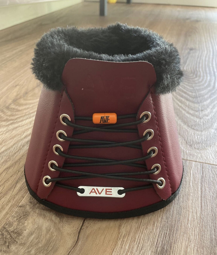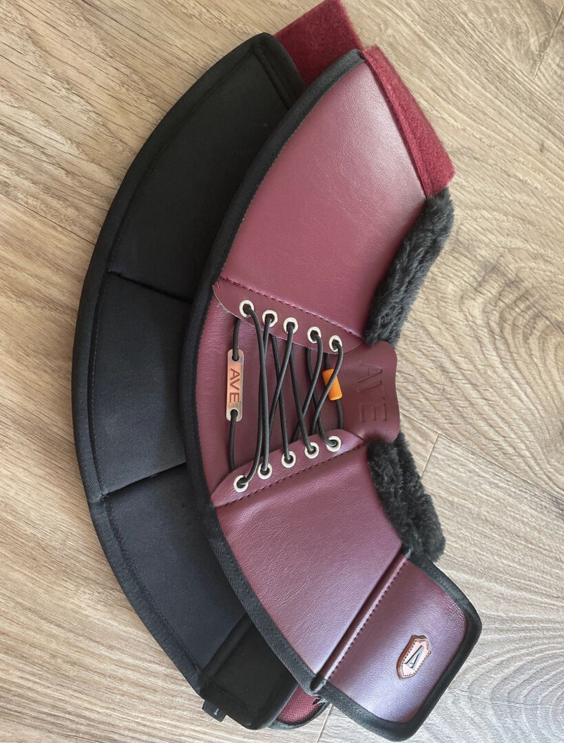Wygląd trampek z dzwoneczkami na kopyta rozmiar L - Sprzedam dzwonki na kopyta w rozmiarze L (ciepła krew). Kolor: Bordeaux Sztuczna skóra z czarnym sztucznym futrem Są fabrycznie nowe i zostały tylko raz przymierzone. Mój koń ma zimnokrwiste stopy, a one mu nie pasują. Mam nadzieję, że ktoś będzie z nich zadowolony, niestety u mnie leżą tylko w pudełku. Cena w momencie zakupu: 55 € - sprzedałbym je za 40 €.