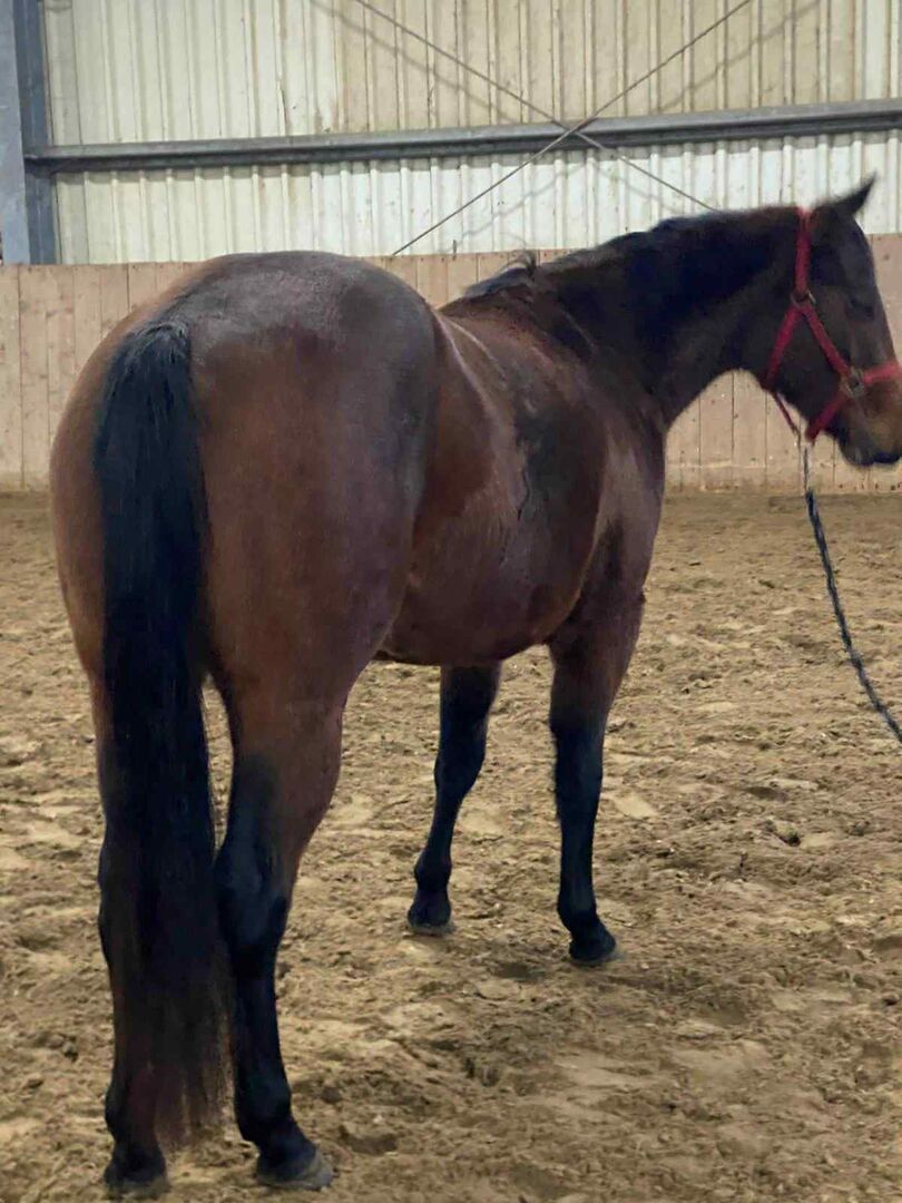 Sally Cant Wait - piękna klacz rasy Quarter Horse, urodzona 18.04.2023 r., gniada, o aktualnym wzroście 140 cm. Przyciąga wzrok wspaniałym umaszczeniem, prawidłową budową i bardzo ładną, stabilną budową. Sally rozwinęła się zgodnie ze swoim wiekiem, jest zdrowa, a zdjęcia rentgenowskie są dostępne bez żadnych ustaleń. Dorastała w mieszanym stadzie młodych koni i jest zaznajomiona zarówno ze stajniami otwartymi, jak i boksami. Zawsze otrzymywała wysokiej jakości paszę mineralną i treściwą. Jest bardzo dobrze zaznajomiona z weterynarzem i kowalem, a na co dzień zachowuje się bardzo dobrze. Sally ma uroczy, łagodny i zorientowany na ludzi charakter. Jest grzeczna, przytulaśna, ufna i regularnie poddawana zabiegom pielęgnacyjnym. Nie ma problemów z ABC młodych koni, pielęgnacją i dbaniem o kopyta. Sally świetnie się rusza i jest bardzo ciekawym młodym koniem z dużym potencjałem na przyszłość, zwłaszcza na arenie pokazów reiningowych. Ze względu na jej pierwszorzędny i bardzo ekscytujący rodowód, jest również idealna do hodowli. Sally jest córką odnoszącego sukcesy Tricked Out Spook, syna Spooks Gotta Gun. Jej matka jest córką Smart Spook. Posiada papiery AQHA i paszport jeździecki, a także nominację europejską NRHA. Obiecująca młoda klacz z urokiem, doskonałym rodowodem i najlepszymi warunkami do sportu i hodowli.