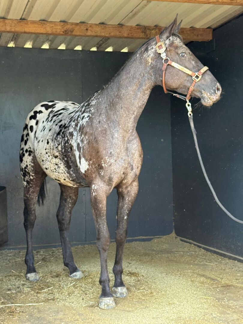 Wymarzony koń z kropkami szuka wybranki serca - Lokalizacja: 31655 Stadthagen Ta piękna klacz Appaloosa o niezwykłym czarnym umaszczeniu urodziła się w 2022 roku i obecnie mierzy około 156 cm. Posiada paszport konia i imponuje prawidłową budową oraz szczególnie życzliwym i zorientowanym na ludzi charakterem. Młoda klacz wciąż się rozwija, ale już teraz jest bardzo fajna, zabawna i chętna do nauki. Jest absolutnie niewrażliwa na hałas, przytulaśna i zawsze grzeczna i nieskomplikowana w codziennej obsłudze, a także u weterynarza i kowala. Jest zaznajomiona zarówno ze stajnią, jak i pastwiskiem, jest regularnie odrobaczana i szczepiona oraz została przeszkolona z dużą cierpliwością i spokojem. Klacz jest obecnie ujeżdżana, dobrze chodzi i kłusuje pod siodłem. Jest również zmotywowana do pracy na podwójnej lonży i na ziemi. Jej rytmiczne, atrakcyjne chody czynią z niej interesującą młodą partnerkę do szerokiego zakresu zastosowań - czy to w jeździe rekreacyjnej, ranczerskiej czy trailowej. Ta młoda dama jest idealnym partnerem dla jeźdźców, którzy chcą wspólnie przejść od młodego konia do niezawodnego partnera do rekreacji lub zawodów. Ma potencjał i nastawienie, by stać się prawdziwym wszechstronnym koniem.