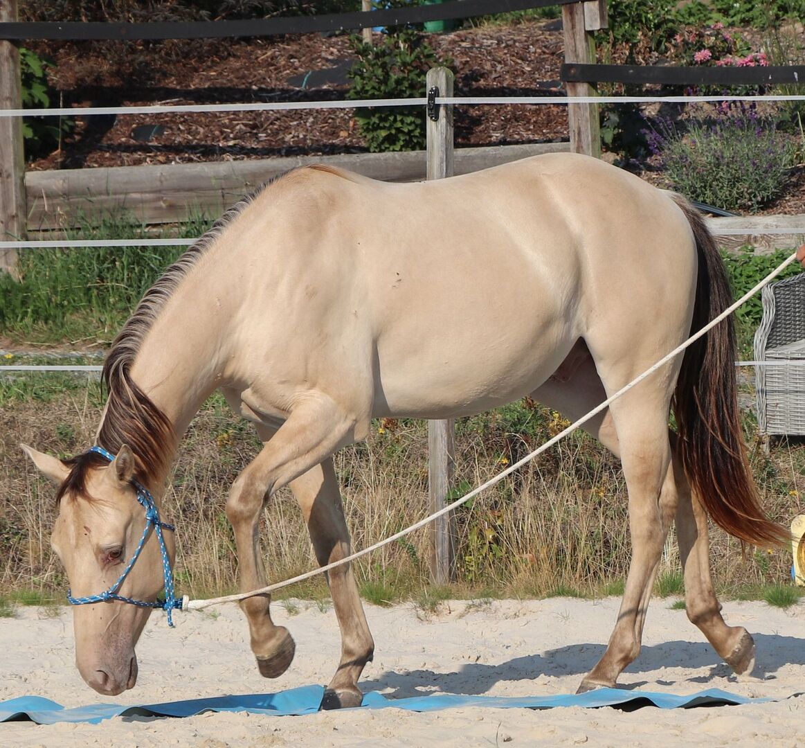 Wymarzony koń z sercem i kolorem - Zeb szuka swojego człowieka - Lokalizacja: 01809 Müglitztal Zeb King Maxen - piękny wałach rasy Quarter Horse, urodzony 2 maja 2022 r. Swoim rzadkim i niezwykłym umaszczeniem Amber Champagne Dun przyciąga uwagę wszystkich. Osiągnie szacowany ostateczny wzrost około 148 cm i jest zwarty, prawidłowo zbudowany i stabilny - z obiecującymi proporcjami, które czynią go prawdziwym wszechstronnym talentem. Zeb jest zdrowy, genetycznie 6-panelowy n/n po rodzicach i oczywiście zaszczepiony i odrobaczony stosownie do wieku. Dorastał w mieszanym stadzie w otwartej stajni, gdzie mógł doświadczyć dużo spokoju i bezpieczeństwa w najlepszych warunkach. Jego charakter jest równie przekonujący jak budowa. Wałach jest zorientowany na ludzi, ciekawski, silnie zdenerwowany i zrelaksowany. Jednocześnie jest uważny, chętny do nauki i odważny w obliczu nowych zadań. Zeb jest dobrze wychowany, łatwy w obsłudze, dobrze wychowany i szybko się uczy - to najlepsze warunki do niezawodnego partnerstwa w dłuższej perspektywie. Obecnie jest starannie i z wyczuciem przygotowywany do życia jako koń wierzchowy zgodnie z zasadami jeździectwa naturalnego. Został wdrożony i jest bardzo dobrze wychowany i spokojny, nawet w terenie. Dzięki dobremu rodowodowi, wspaniałemu wnętrzu i wszechstronności Zeb jest idealny do rekreacji, sportu lub zawodów. To prawdziwy młody koń z przyszłością - lojalny partner, na którym można polegać.