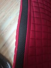 Tutaj oferuję czerwoną podkładkę pod siodło ujeżdżeniowe od Riderschoice z wewnętrznym włóknem ceramicznym i otworami cyrkulacyjnymi na grzbiecie. Włókno ceramiczne odbija ciepło ciała jeźdźca, a tym samym zapewnia rozluźnienie mięśni i krążenie krwi. Otwory cyrkulacyjne sprawiają, że koń nie przegrzewa się podczas pracy. Używałem ich bardzo rzadko, więc są w prawie nowym stanie.