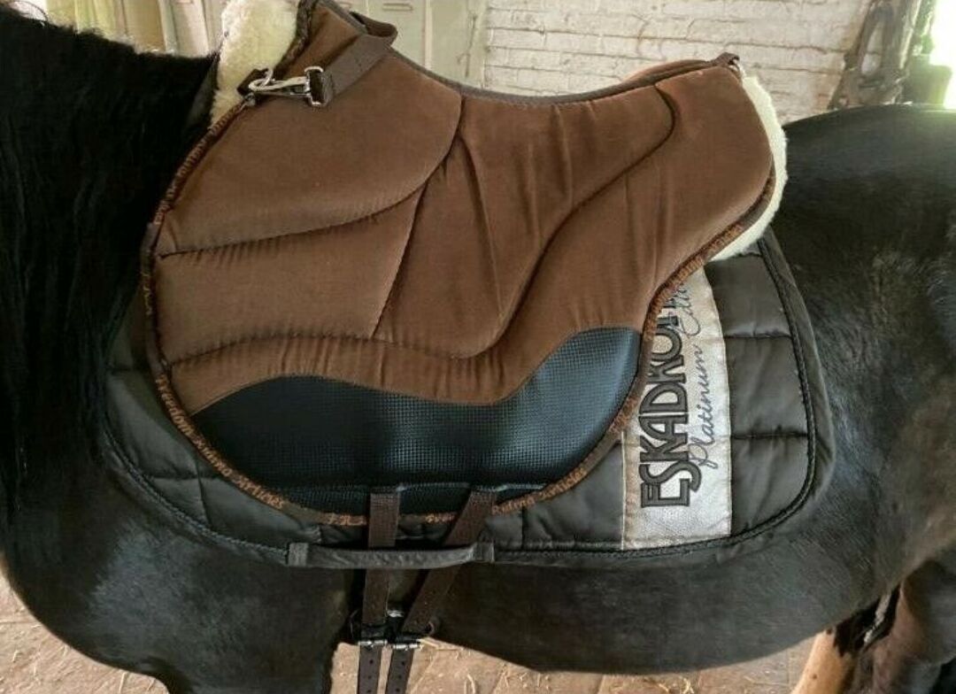 Podkładka jest w doskonałym stanie, bez rozdarć, otwartych szwów i uszkodzeń. Dwa dodatkowe D-ringi zostały przyszyte z tyłu, aby można było założyć futrzane siedzisko.