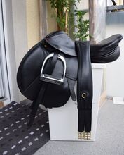 Zakres dostawy: siodło skokowe Albion, jak nowe aluminiowe strzemiona od equi wing, jak nowe skóry strzemion od EMPORIO, skórzany popręg 4HORSES Equiva 135 cm używany.