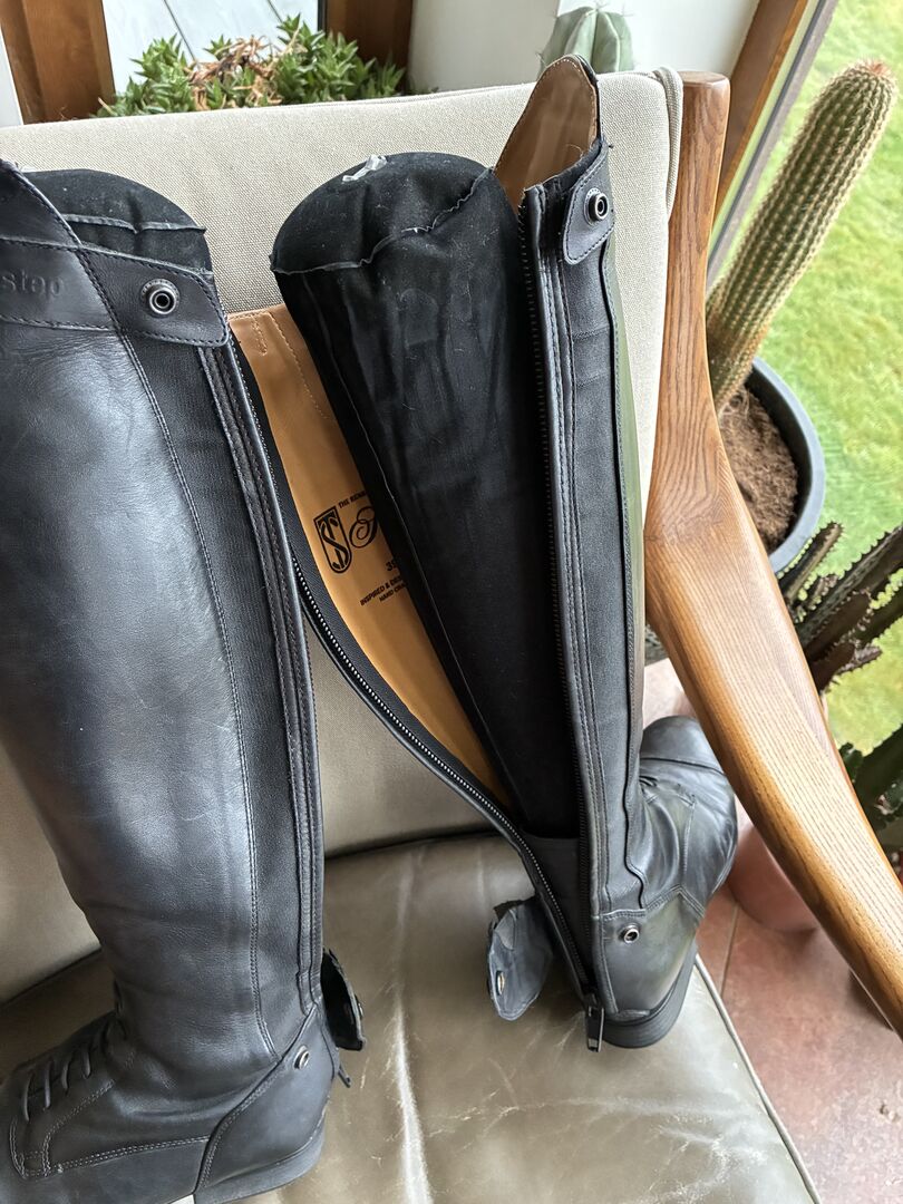 Tredstep boots are known for quality and durability. This pair is less than a year old and has rarely been used. (I gave up show Jumping due to back issues). The Sirani model is made of premium leather and very comfortable. They are size EU 39 / UK size 6. regular height and regular calf width. The come with inner supports and a spare pair of laces.