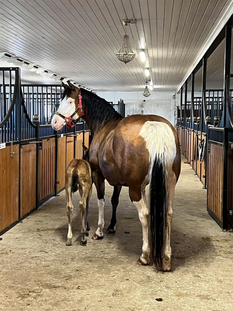 Wysokiej jakości klacz hodowlana rasy Quarter Horse z najlepszym rodowodem - Lokalizacja: 92266 Tavelsjö/Szwecja Gunnerbelle to piękna klacz rasy Quarter Horse urodzona w 2015 roku w specjalnym kolorze Bay Splash (SW1 + SW2), a także przyciąga wzrok swoimi dwoma niebieskimi oczami. Przy wzroście ok. 147 cm ma zwartą budowę, a jej pokrój jest prawidłowy i harmonijny. Genetycznie jest testowana na 5 panelach n/n. Charakter Gunnerbelle jest przekonujący na całej linii. Jest bardzo słodka, zorientowana na ludzi i zawsze przyjazna i przyjemna w obsłudze. Jej nieskomplikowany charakter sprawia, że jest łatwa w obsłudze i nadaje się również dla początkujących. Jest dobrze wychowana i niezawodna pod siodłem, zwłaszcza w terenie. Jest dobrze wychowana w codziennej obsłudze. Zna zarówno kowala, jak i weterynarza, bez problemu jeździ w przyczepie i jest przyzwyczajona do przebywania zarówno w stadzie, jak i w boksie. Na szczególną uwagę zasługuje jej jakość jako klaczy hodowlanej. Gunnerbelle ma pierwszorzędny rodowód reiningowy (Colonels Lone Gun x Roseable po Inwhizible) i udowodniła już, że jest doskonałą matką. Produkuje źrebięta bardzo dobrej jakości i niezawodnie przekazuje swoje pozytywne cechy, dzięki czemu jej potomstwo rozwija się w świetne konie, które są gotowe do występów. Obecnie jest źrebna w 2026 roku po MS Gunners Cashflow, homozygotycznym ogierze Splash 1. Gunnerbelle jest ujeżdżona i ma solidne przygotowanie reiningowe, a w terenie zachowuje się bardzo dobrze. Jest jednak sprzedawana jako klacz hodowlana. Jest prawdziwym klejnotem hodowlanym i cennym dodatkiem do każdego stada hodowlanego.