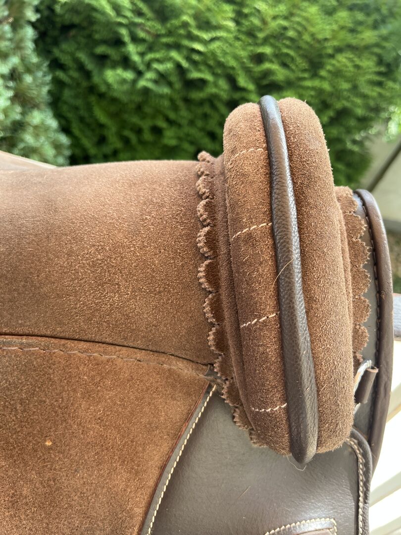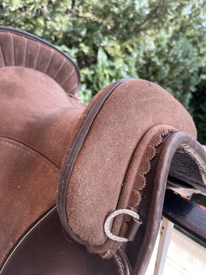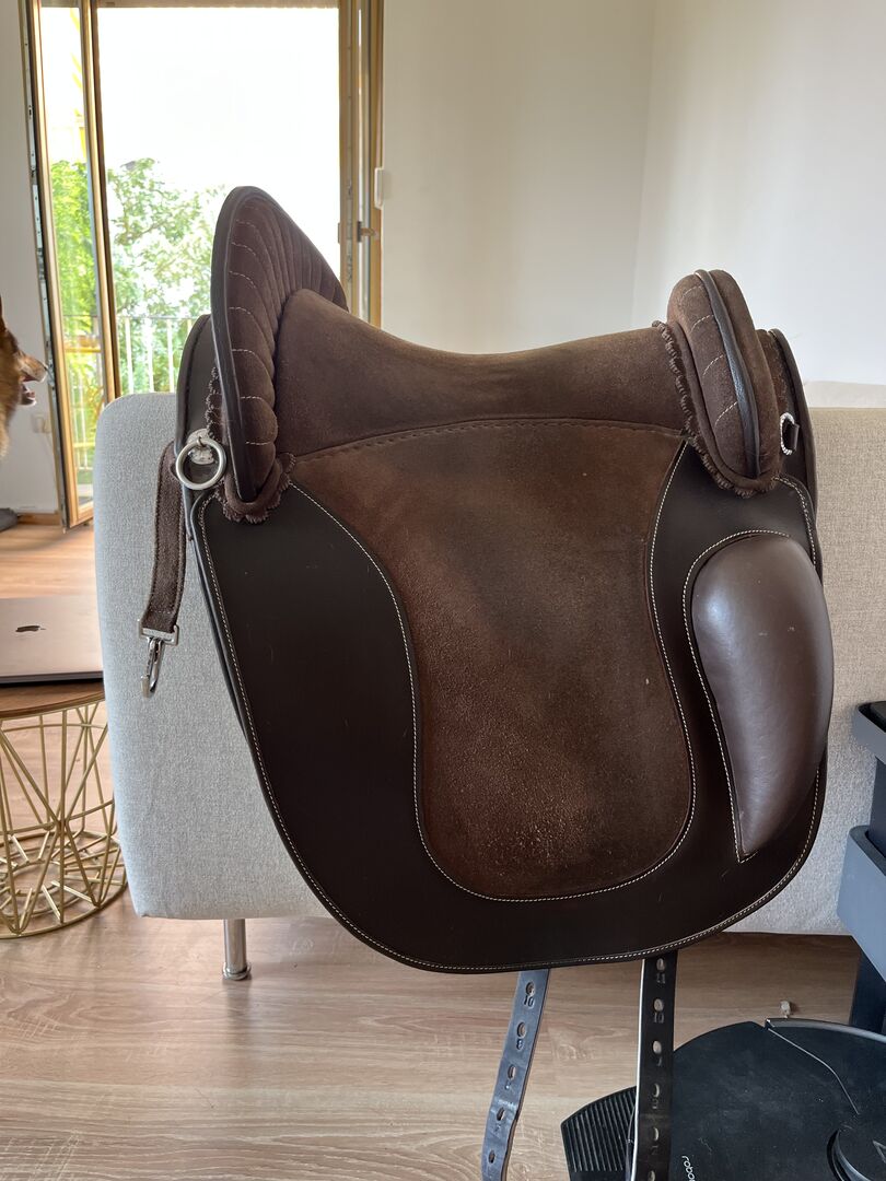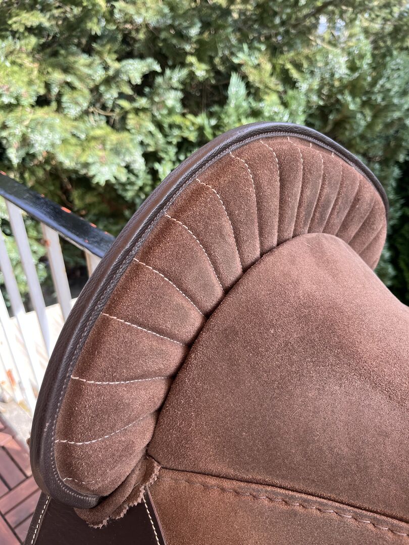 Siodło kupiłam w zeszłym roku w listopadzie i jest jak nowe. Oczywiście ma niewielkie ślady użytkowania, ponieważ używałam go codziennie. Jednak jest to zaleta siodła, ponieważ najpierw trzeba "włamać się" do siodła i skórzanego drzewa, tj. materiał mięknie tylko podczas użytkowania i zawsze dostosowuje się do konia. To znaczy do każdego konia. Jeśli jest często używane, jest miękkie, a jeśli zostanie założone na innego konia, ponownie się dostosowuje. Myślę, że to naprawdę fajne. :-) Teraz, kiedy jeździ się na nim miękko, świetnie nadaje się również do treningu młodego konia.