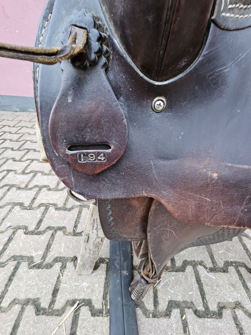 Zachodnie siodło I94 - Sprzedam westernowe siodło w dobrym stanie Szerokość przedniego łęku wynosi 18 Siodło było regularnie konserwowane i można do niego dokupić podkładkę na zimę za 20 €.