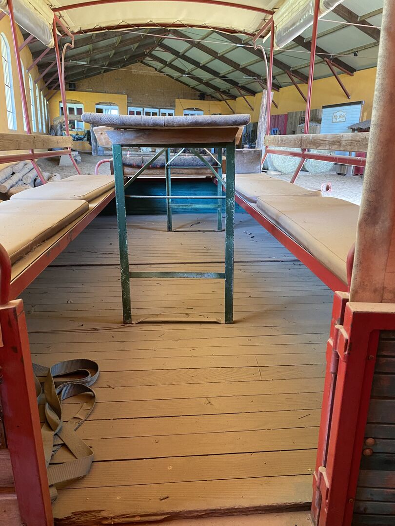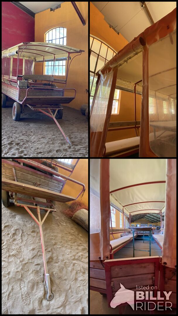 Zadaszony wagon Western Country Leisure - Sprzedam używany kryty wagon dla 12-14 osób dobry stan Hamulec nożny Plandeka do zwijania w dół i w górę Zawsze był ciągnięty przez traktor na wycieczki firmowe.... Znajduje się w Wogezach (Francja) w pobliżu Niemiec i może być przywieziony za dodatkową opłatą, ale w akceptowalnym promieniu