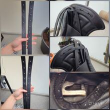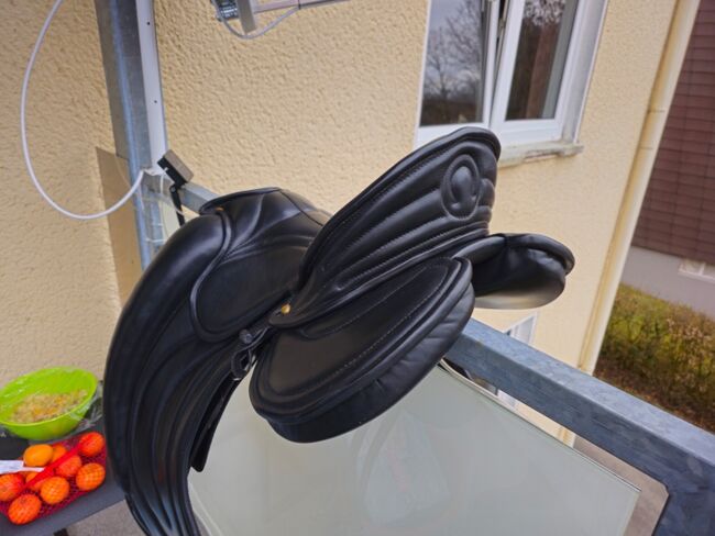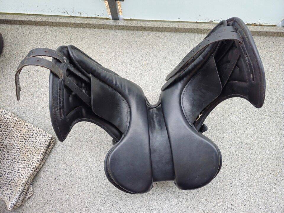 Zamiana/Sprzedaż Signum Omega - Zausche/ Na sprzedaż zadbane siodło ujeżdżeniowe Signum z łękiem "Anatomic" w kolorze czarnym, siedzisko 17 cali, szeroki kanał grzbietowy, całkowita długość siodła ok. 50 cm Dodatki: siedzisko i klapa siodła są zszyte, z "extra seat" - dlatego ma kantar i dlatego jest dopuszczony do zawodów ujeżdżeniowych. Dalsze dane na klapie siodła: 17/1 / 36 / 0