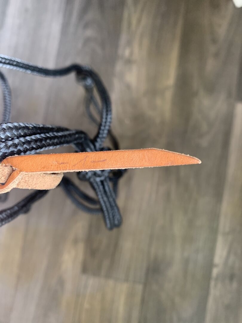 Zawiązywanie węzłów i liny - Sprzedam halter węzeł w rozmiarze 1 z pasującą liną. Ma on długość 3,5 m. Obie są czarne.