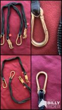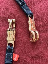 Zawieszka na uwięzi, dwie sztuki - Dwa zapięcia użyte tylko raz, patrz zdjęcia. Kolor różowe złoto. Na sprzedaż w korzystnej cenie ze względu na utylizację wieszaka. Pytania mile widziane! Sprzedaż prywatna, dlatego nie ma gwarancji ani opcji zwrotu.