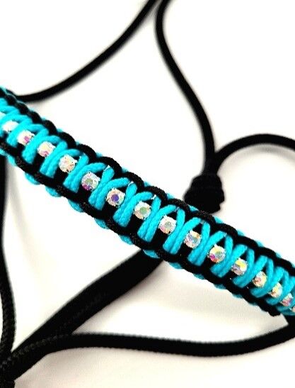 Zawieszka z węzłem koronkowym COB z liną BLACK - Zawieszka z węzłem i sznurkiem w kolorze czarnym W rozmiarze Cob W kolorze czarnym z turkusowym Z kryształkami Z dopasowaną liną (2,5 m) Lina ze skórzaną klapką To brzmi jak wspaniały zestaw dla Twojego coba! Dzięki kantarowi z węzłem w kolorze czarnym, ozdobionemu błyszczącymi kryształkami, Twój koń będzie nie tylko przyciągał wzrok podczas sesji zdjęciowej, ale także oferował praktyczne korzyści podczas pracy naziemnej.