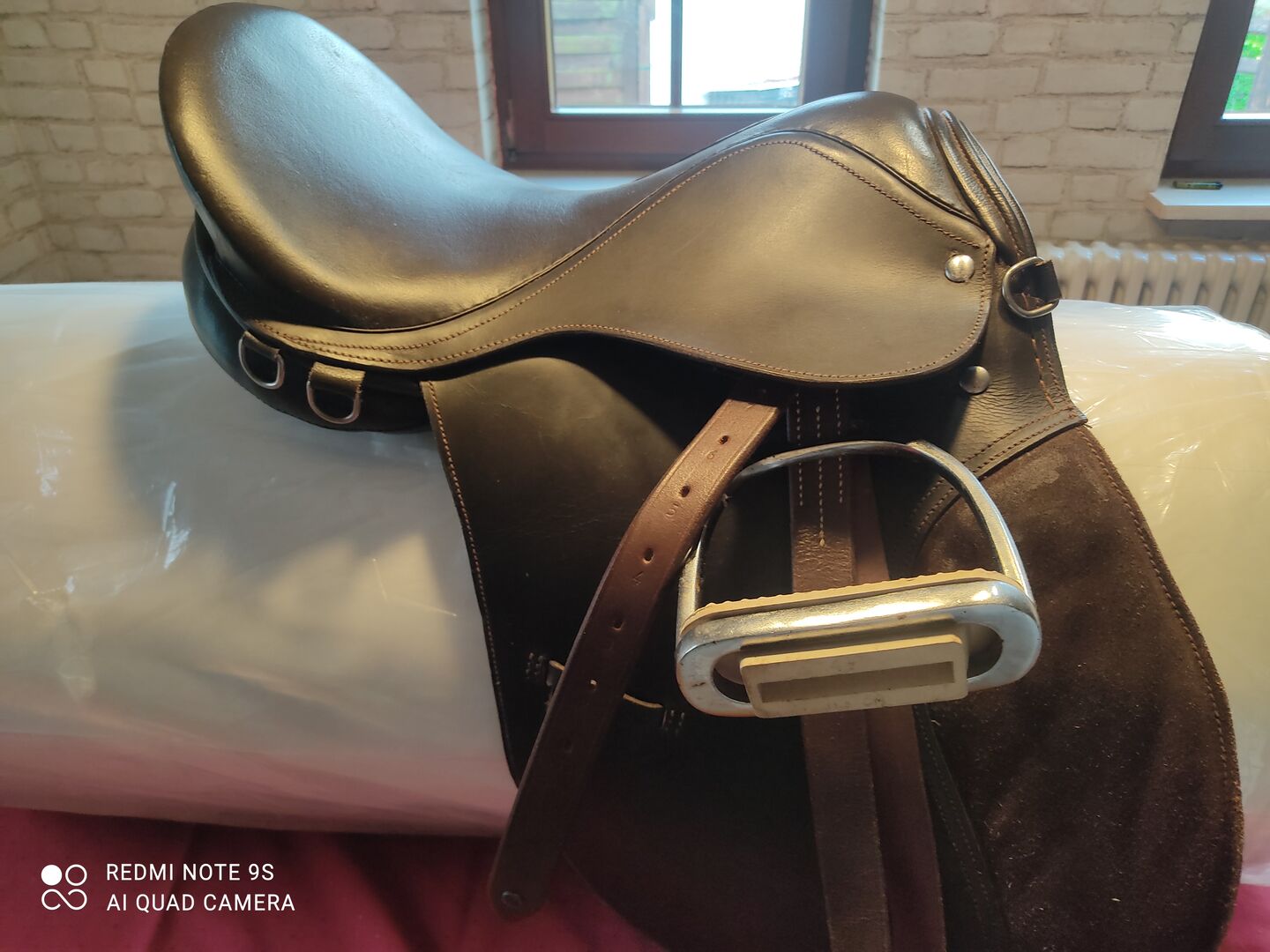 Zawody w siodle EHL - Oferuję moje brązowe siodełko VS marki EHL. Ma niewielkie ślady zużycia (zadrapania) na klapie siodła, ledwo widoczne po wypolerowaniu.