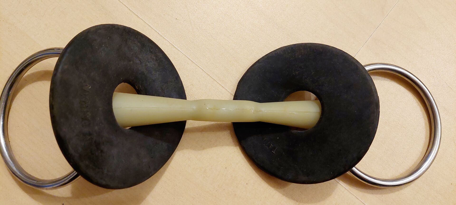 Zęby o smaku jabłkowym - Baton o smaku jabłkowym, użyty kilka razy, ponieważ mój koń nie lubi bitów i dlatego przeszliśmy na bitless. Zawiera 2 dyski bitowe