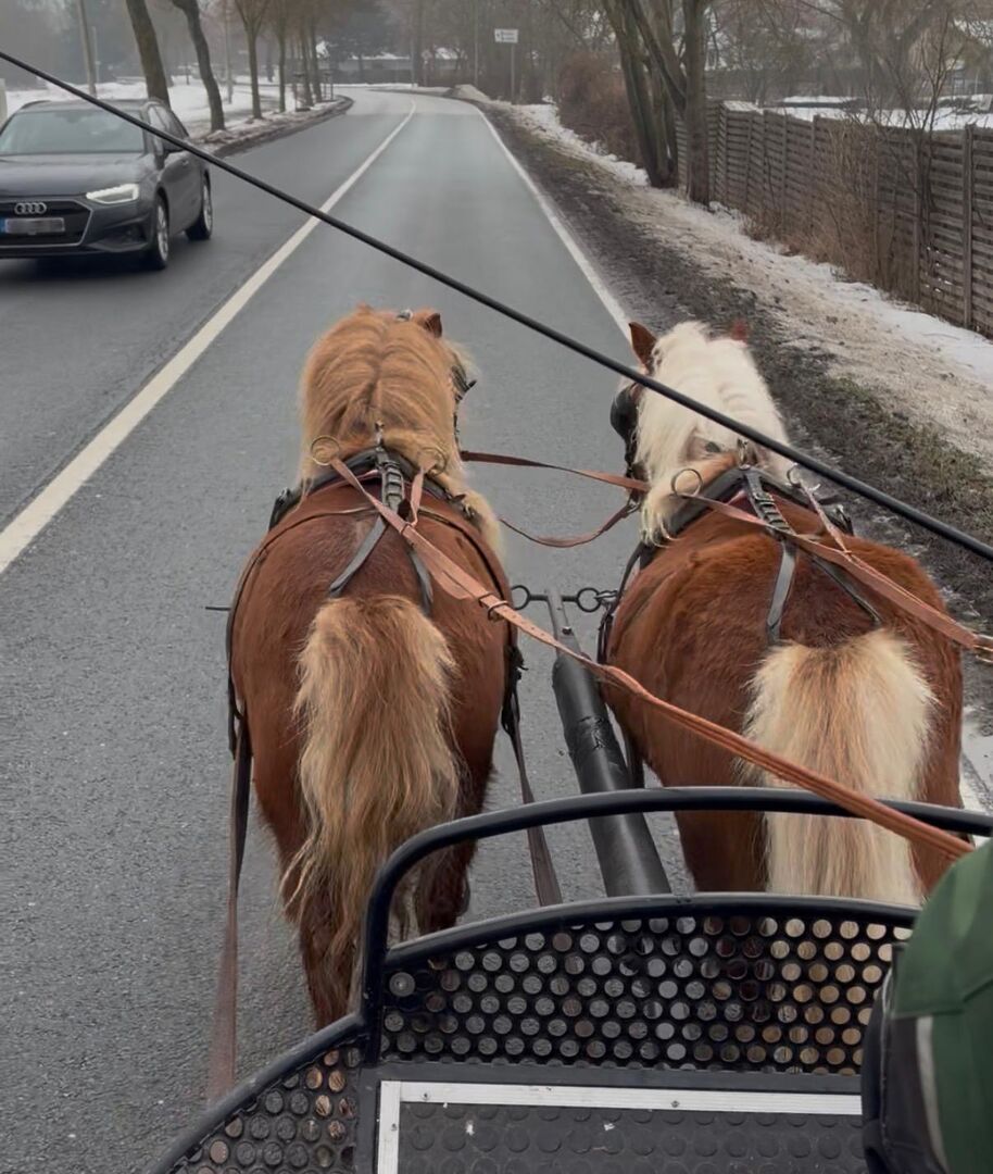 Obie klacze mają 6 lat i 1 metr wzrostu. Dolly to klacz z białą grzywą, pochodzi od Pepe von Obernissa x Sir Wolter v.d. Bekkenkamp. Hella to klacz z ciemną grzywą, pochodzi od Sir Wolter v.d. Bekkenkamp x Martell v.d. Veldhoeven.
