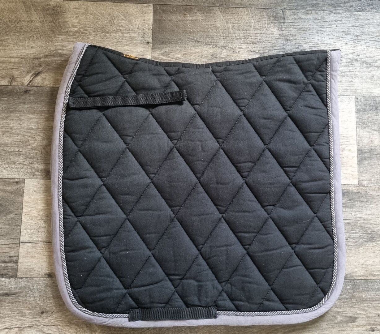 Zestaw BR Podkładka pod siodło, ochraniacz ujeżdżeniowy, kaptur na muchę, dzwonki na kopyta, czarny - Sprzedaję mój ujeżdżeniowy pad siodłowy BR "Event Cooldry" w kolorze czarnym. Było na koniu tylko kilka razy. Sprzedaję również pasujące uszy muchowe (rozmiar Full), które nigdy nie były na koniu (metka z ceną nadal dołączona). Ponadto sprzedawane są pasujące buty ujeżdżeniowe w rozmiarze M. Jeden "Pro Max Patentleder Strass", który również nigdy nie był na koniu i jeden "BR Pro Max Lack", który nie był na koniu więcej niż pięć razy. Na sprzedaż są również pasujące buty do kopyt "Glamour Lack" w rozmiarze M, które również nie zostały jeszcze założone na nogę konia.