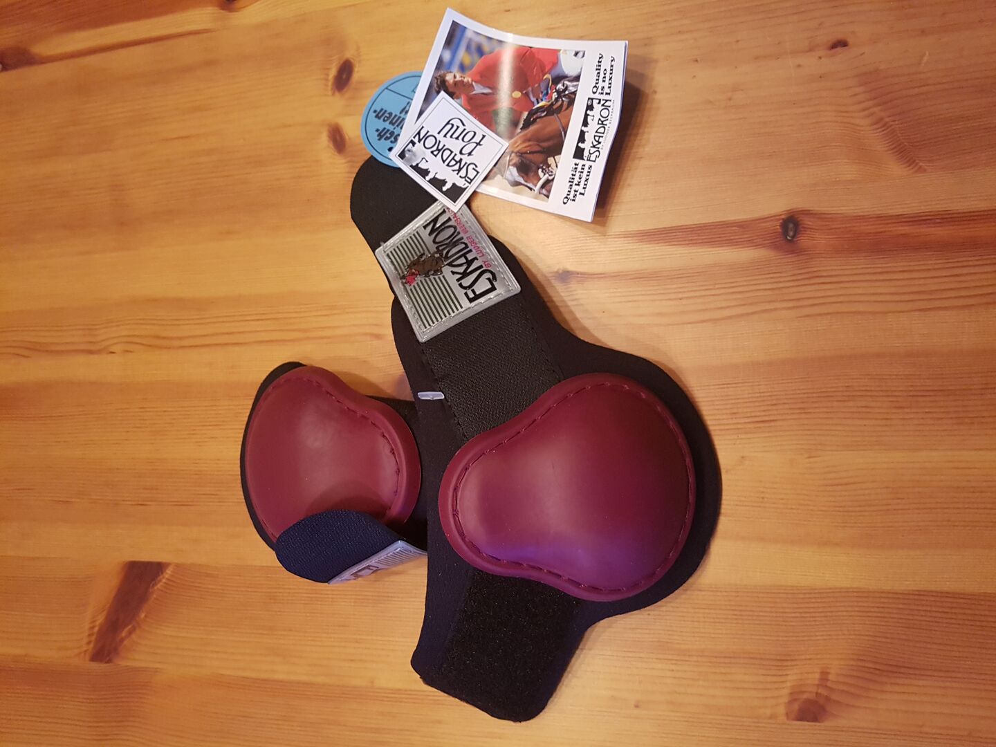 Zestaw buty do skoków + ochraniacze Eskadron pony bordo - nowe - Wspaniały zestaw butów do skoków na kucyku i butów do jazdy konnej firmy Eskadron w kolorze bordowym. Bardzo ładny kolor.