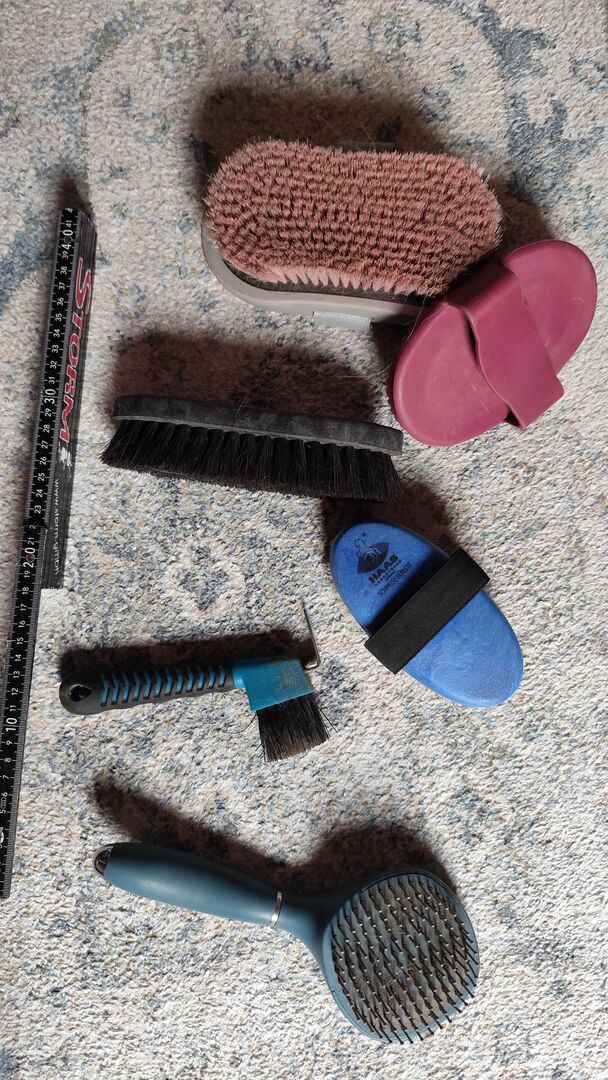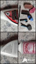 Zestaw czyszczący, spray - Super dunning spray (wciąż w połowie pełny), zestaw do pielęgnacji (rzadko używany lub nowy) i nowy (oryginalnie zapieczętowany) spray na muchy.