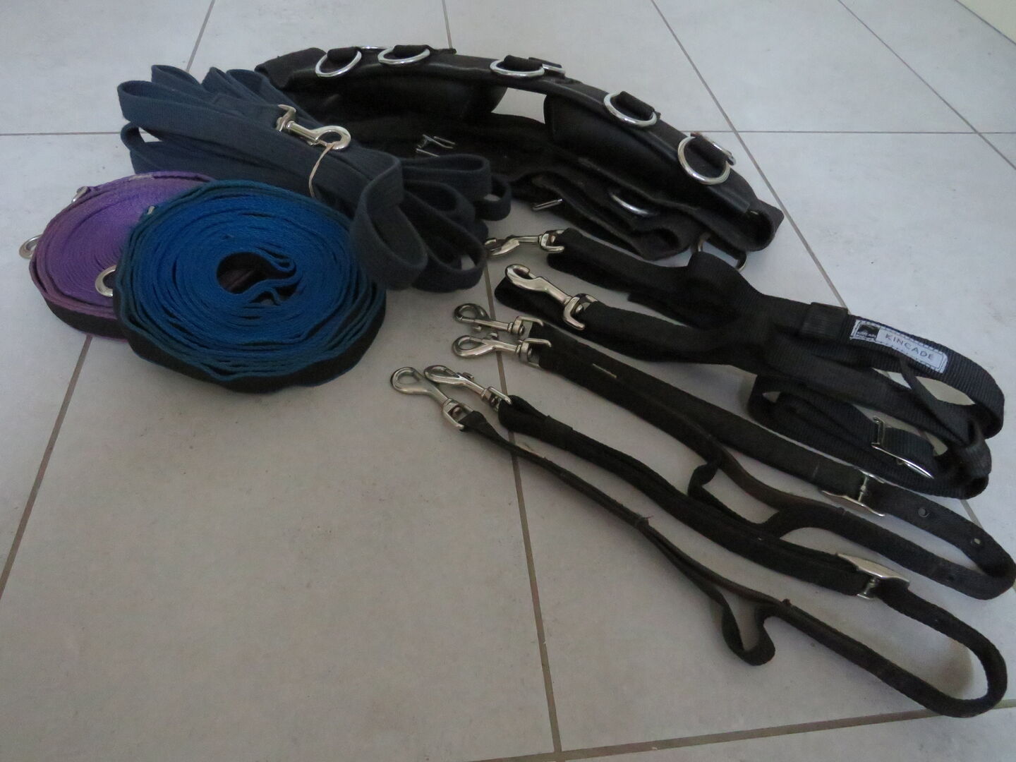 Includes a lunging girth, a set of long reins, a set of Kincade side reins, and lunge line