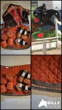 Zestaw do treningu, zawodów ujeżdżeniowych i skoków przez przeszkody - Zestaw jest odpowiedni dla wszystkich koni pełnej krwi, derka ma rozmiar 140. Zawsze lubiłem używać wszystkiego do treningu, ale także do skoków przez przeszkody. Kolor w rzeczywistości pasuje do każdego koloru sierści, a dzięki temu strojowi przyciągasz wzrok.