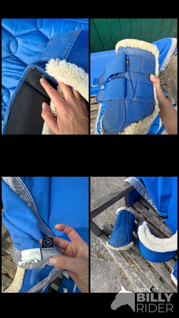 Zestaw Eskadrn - Sprzedaję tutaj mój zestaw Eskadron atlantic blue Składający się z Dywanik rozmiar Xl Podkładka pod siodło w dl Getry M i L Kalosze XL Tylko na sprzedaż jako zestaw Sprzedaż prywatna, dlatego nie ma gwarancji ani zwrotu Możliwa wysyłka za dodatkową opłatą