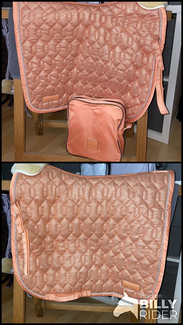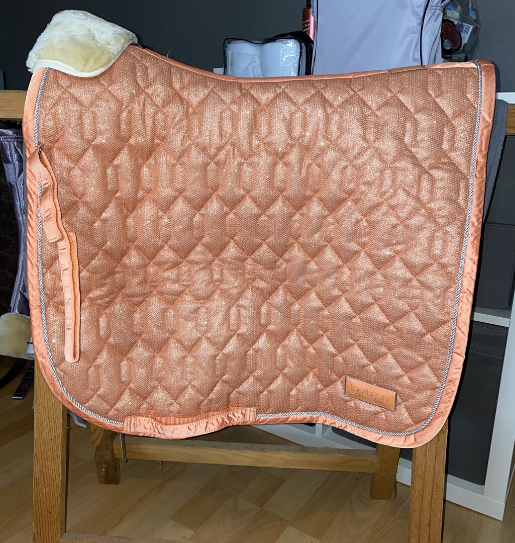 Niestety podkładka pod siodło nie jest już całkiem prosta ze względu na pranie (patrz zdjęcia), ale rzadko używana i w dobrym stanie.