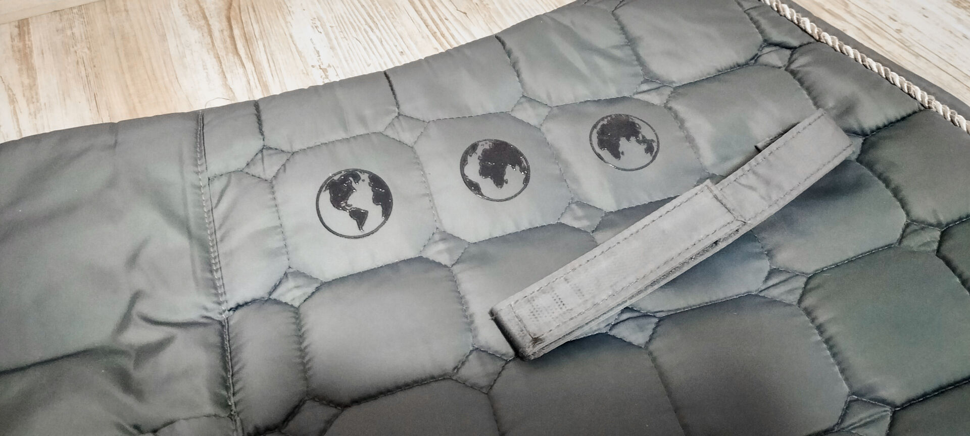 Podkładka pod siodło jest w bardzo dobrym stanie, posiada dwie kieszenie na telefony komórkowe i smakołyki. Maska na muchy jest również w dobrym stanie. Jeden z bandaży odpadł, ale to nie jest problem. Wszystko jest świeżo wyprane i na sprzedaż za 39€. (Możliwe są również oddzielne przedmioty).
