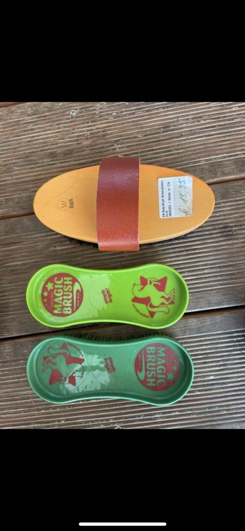 Zestaw pędzli - 2 szczotki Magicbrush, jedna szczotka Wladhausen, bardzo rzadko, jeśli w ogóle, używane, mogą być również sprzedawane oddzielnie; szczotka Waldhausen kosztuje 15,90 zł (nowa).