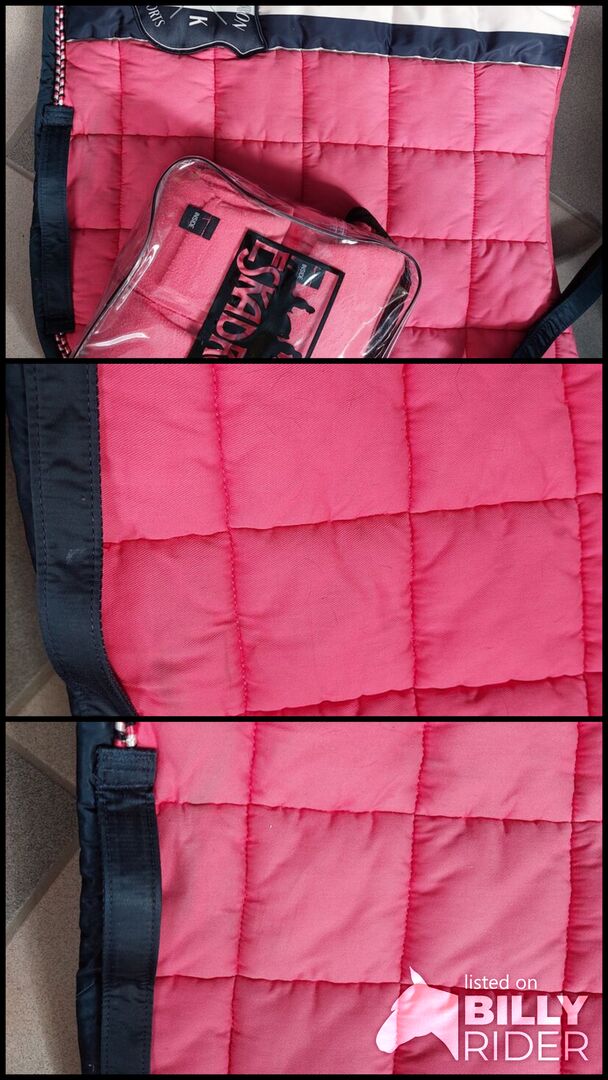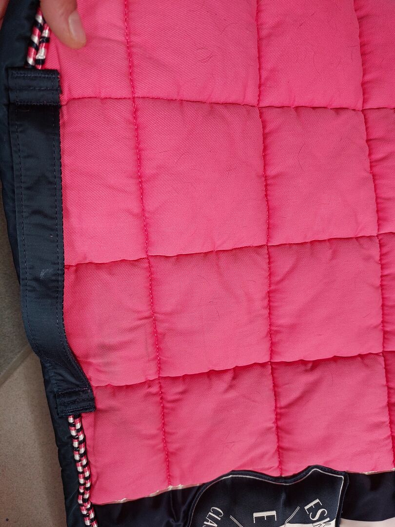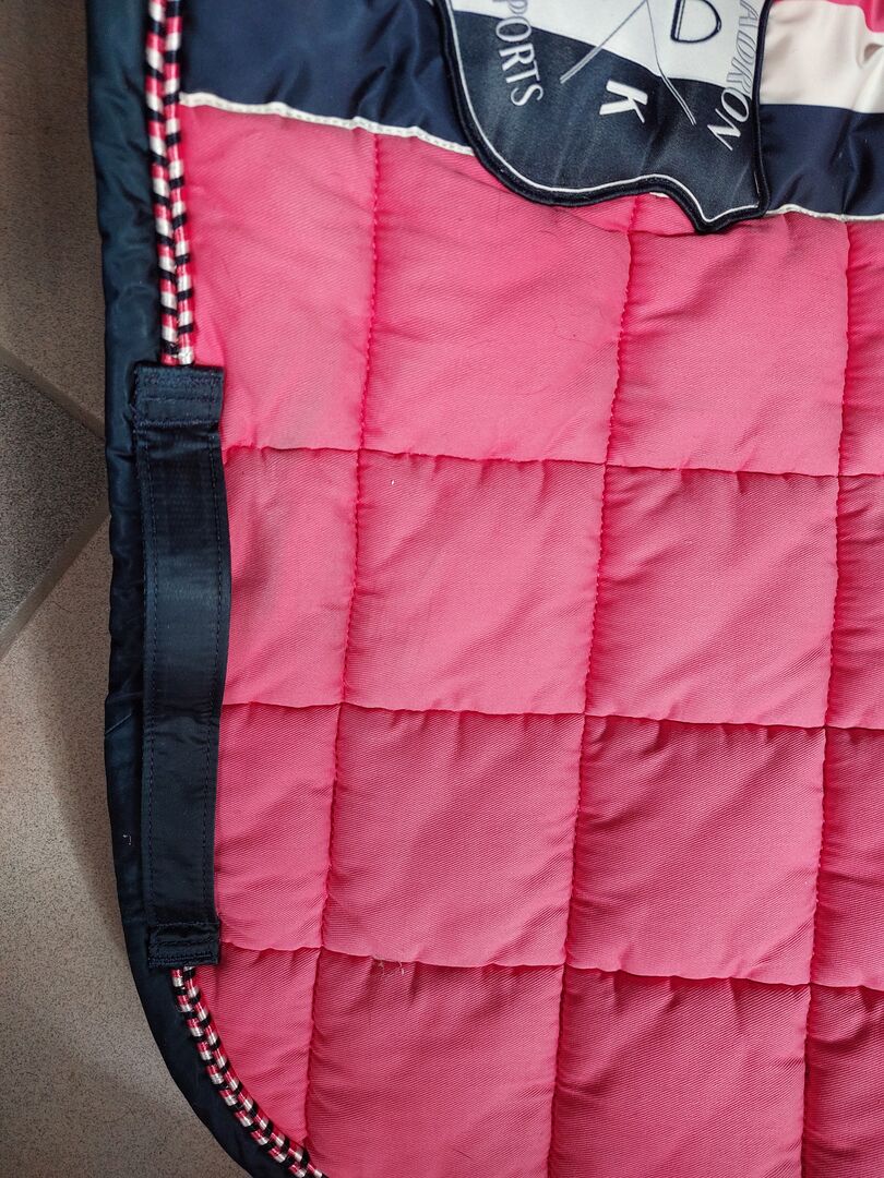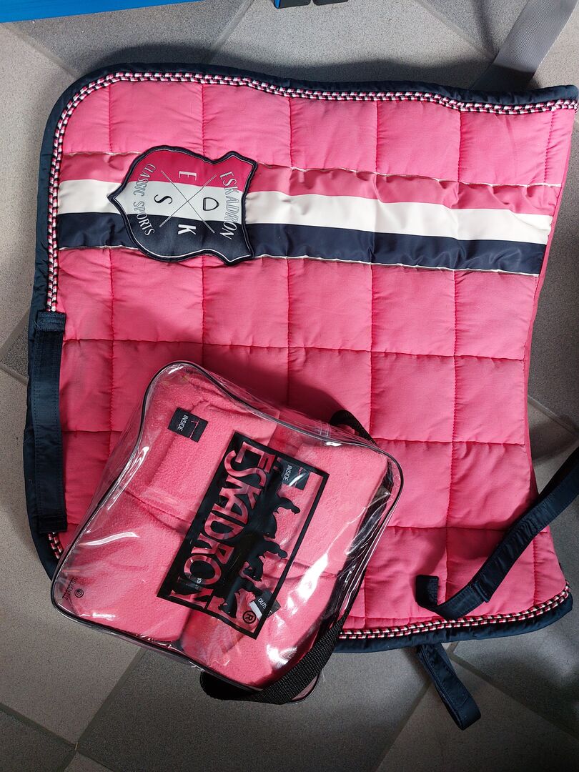 Zestaw podkładek pod siodło - Oferuję zestaw firmy Eskadron w kolorze koralowym. Na podkładce pod siodło są niewielkie przebarwienia. Komplet został wyprany.