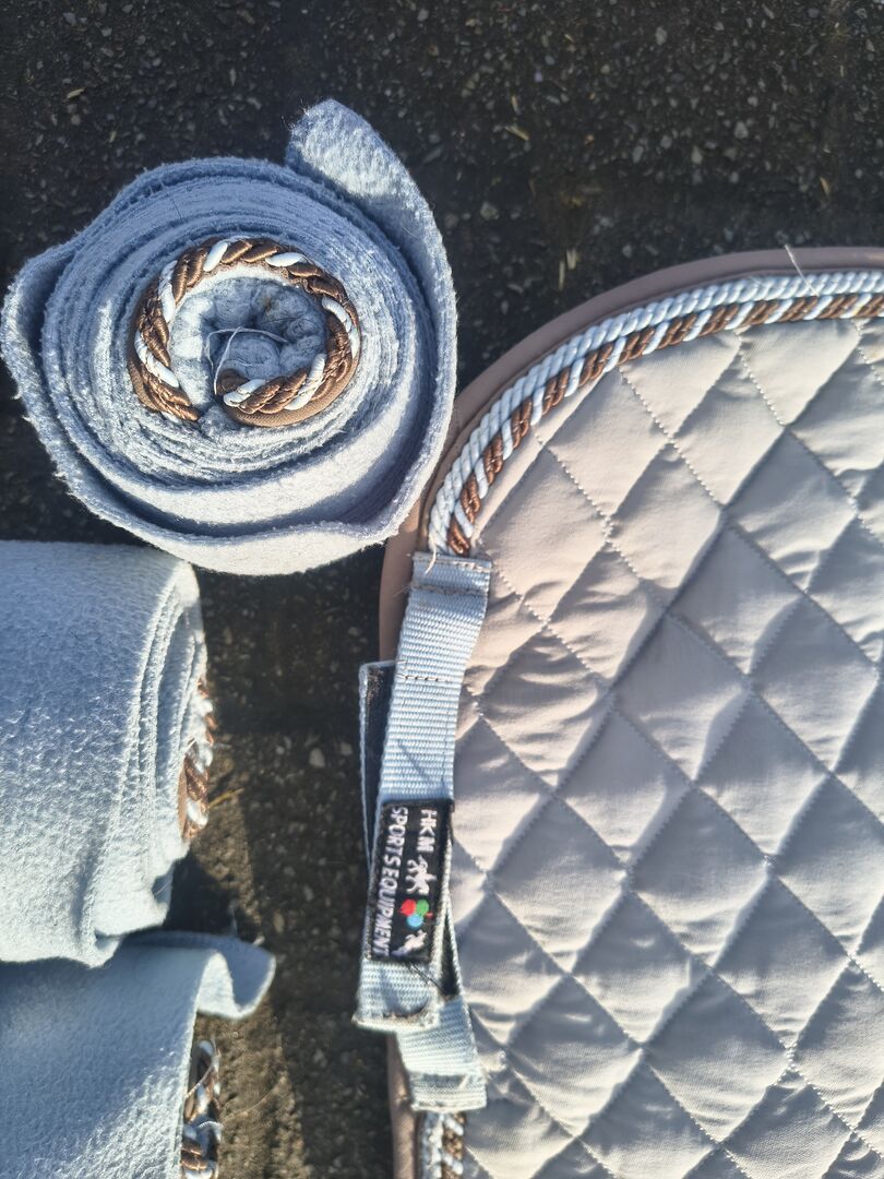 Zestaw podkładek pod siodło - Sprzedam podkładkę pod siodło z pasującymi bandażami marki HKM.