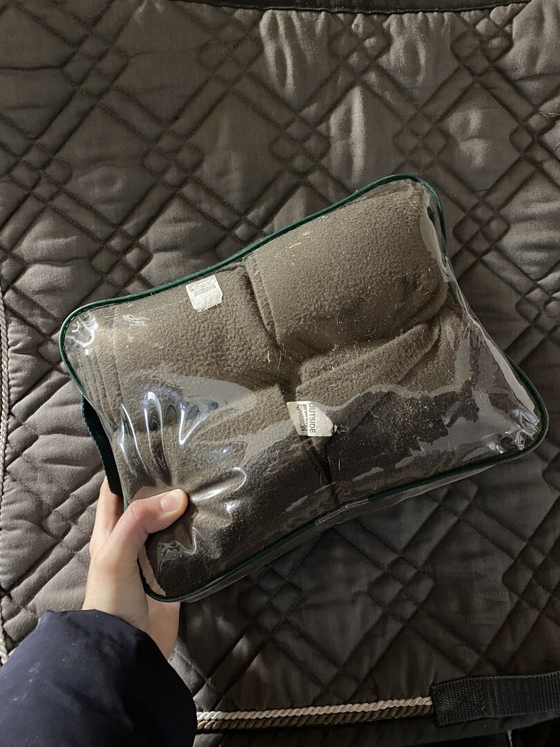 Zestaw podkładek pod siodło i bandaży Eskadron - Eskadron podkładka pod siodło w kolorze taupe wraz z 4 pasującymi bandażami, rozmiar WB Używane, w dobrym stanie