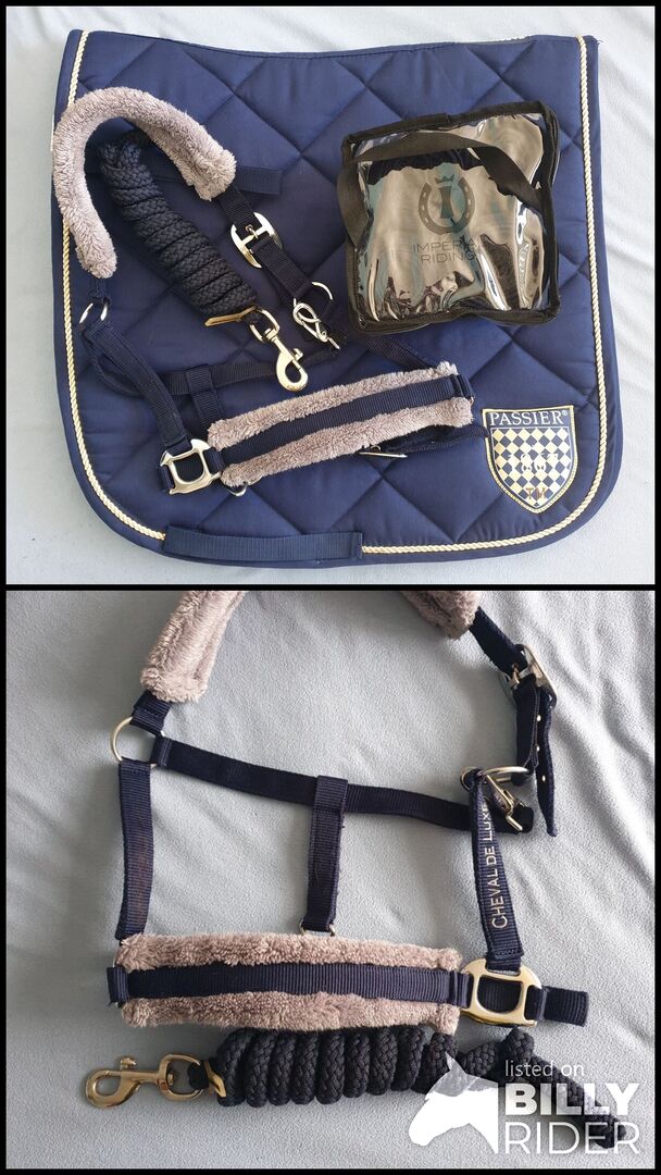 Set Schabracke Bandagen Halfter Strick blau Passier Eskadron