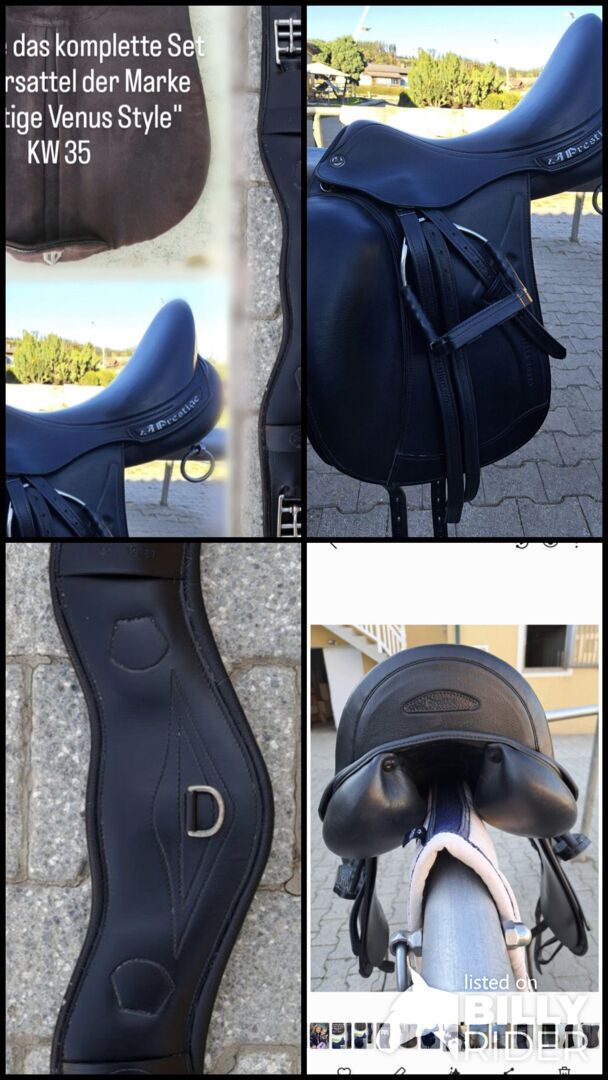 Zestaw siodeł ujeżdżeniowych "Venus Style - Sprzedam siodło ujeżdżeniowe "Venus Style" z powodu rezygnacji z jazdy konnej, wraz z akcesoriami. Siodło Prestige KW: 35, Popręg Prestige 60 cm, Podkładka Winderen, Strzemiona w tym skóry strzemion