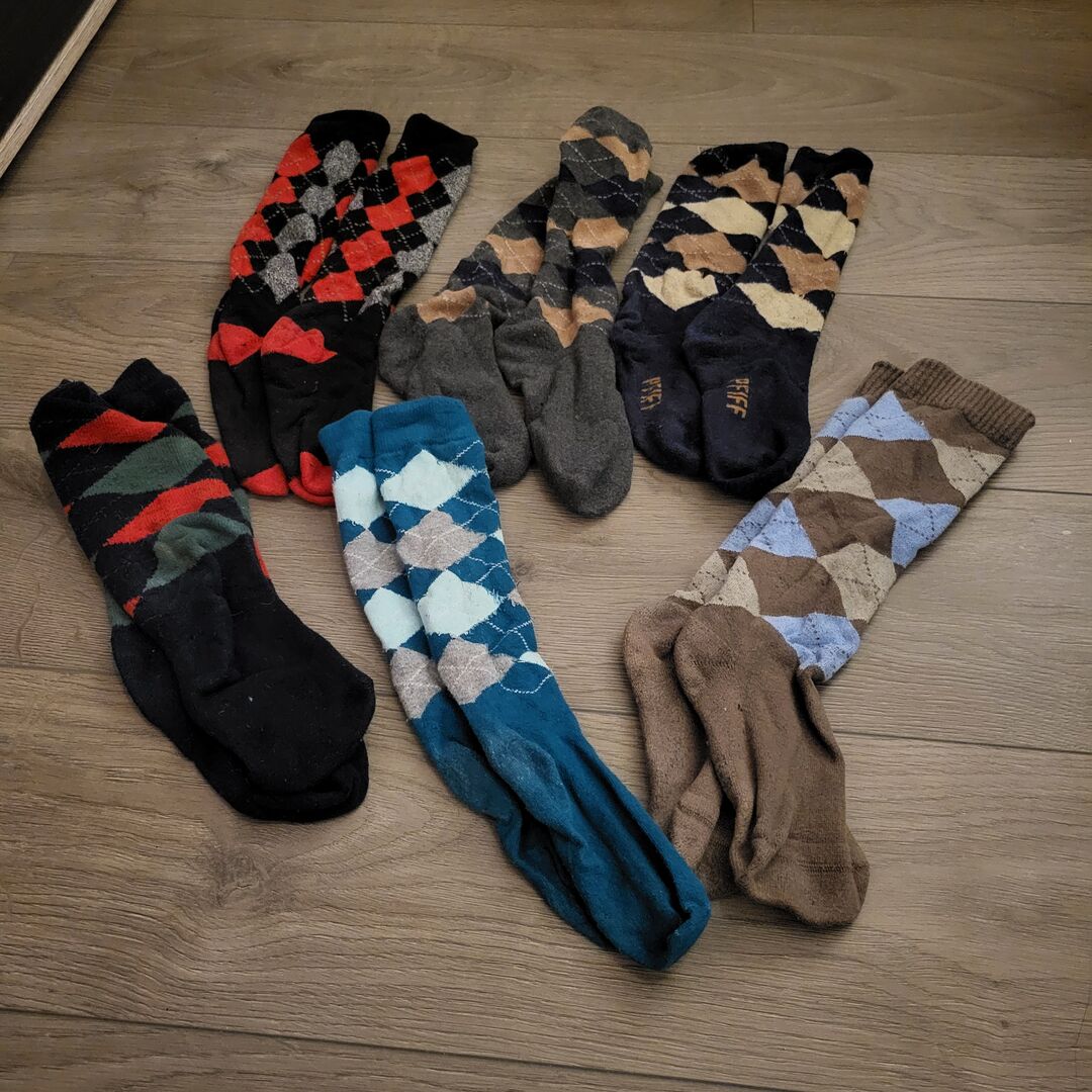 Zestaw skarpet jeździeckich - Sprzedam 6 par używanych skarpet jeździeckich, najlepiej w komplecie. Były noszone kilka razy, ale są w dobrym stanie i nie mają dziur. Różne marki jak Pfiff i Hkm. 1 para (turkusowa) jest nieco cieńsza niż pozostałe.