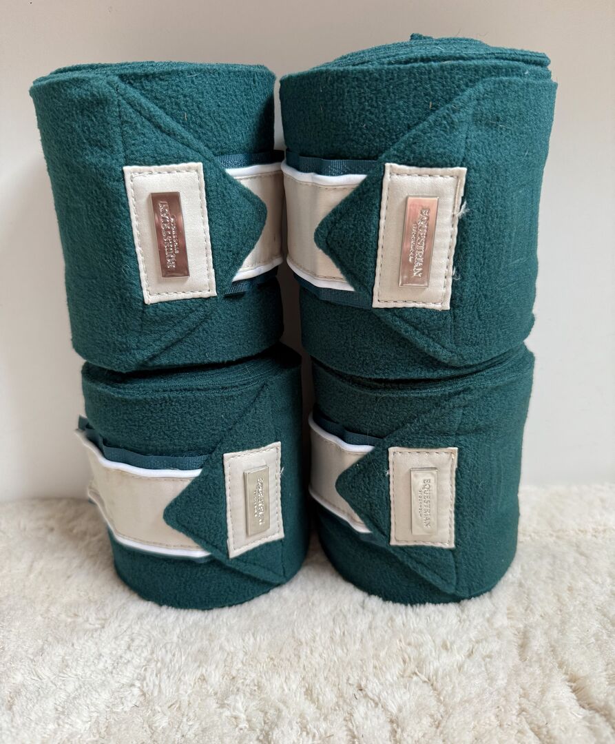 Zestaw ujeżdżeniowy Equestrian Stockholm - Na sprzedaż bardzo dobrze zachowany zestaw marki Equestrian Stockholm w kolorze Amazonite, podkładka pod siodło w rozmiarze Cob i bandaże w rozmiarze Full.