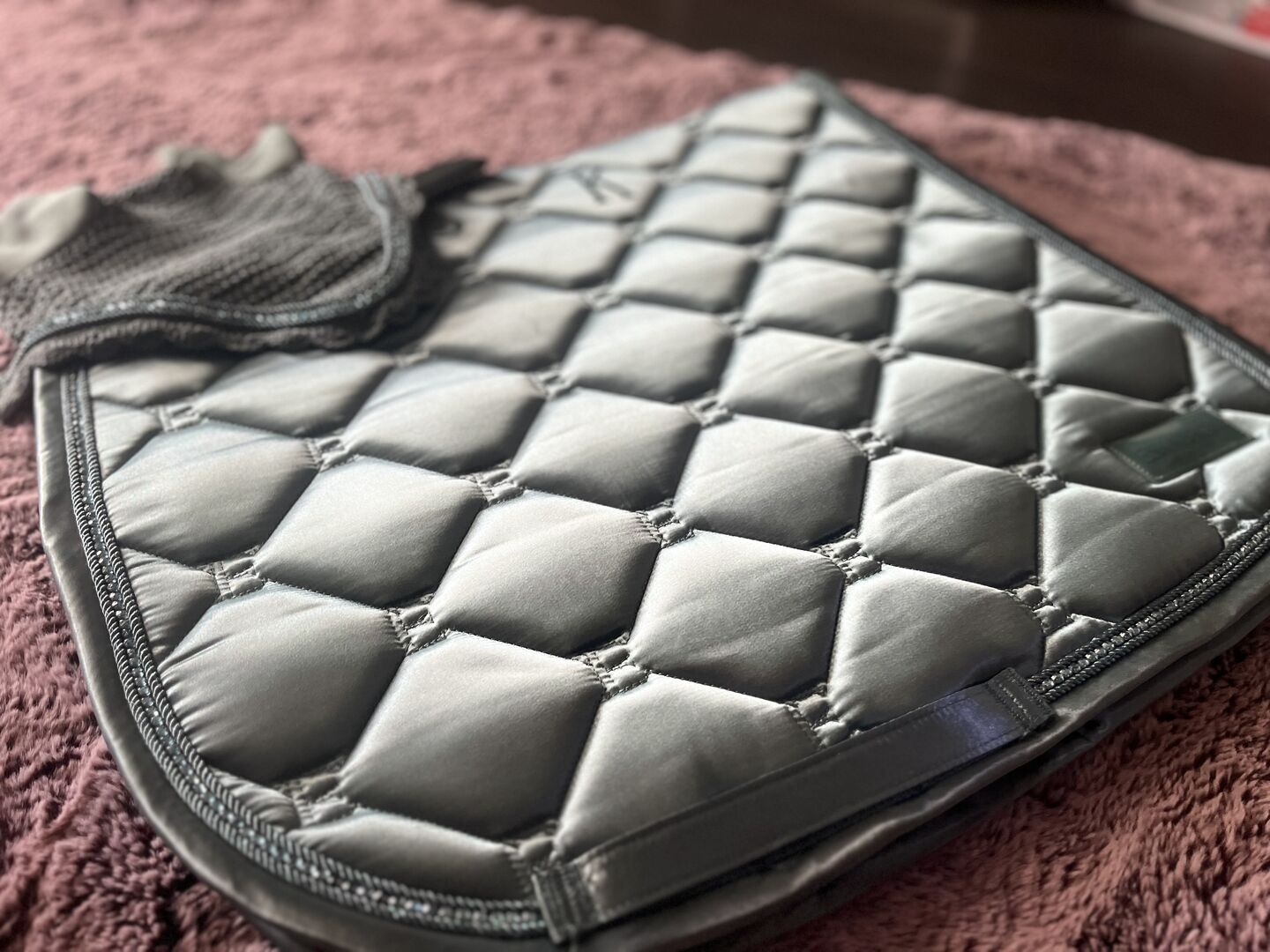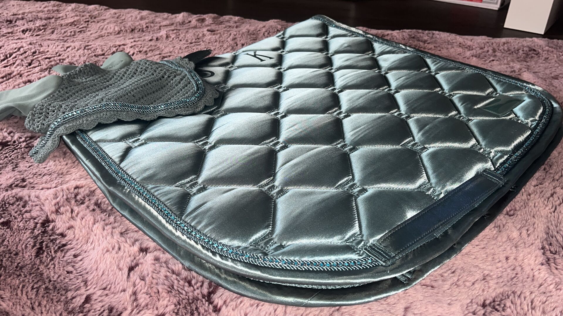 Sprzedam dwa razy używany pad pod siodło w kolorze Balsamgreen Satin Dressage ikl fly bonnet w WB .