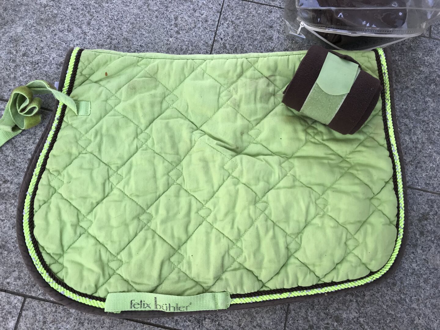 Zielona podkładka pod siodło od Felixa Bühlera - Piękna podkładka pod siodło firmy Felix Bühler. Podkładka pod siodło nosi niewielkie ślady użytkowania, ale nie są one widoczne pod siodłem. Bandaże niestety już się skończyły
