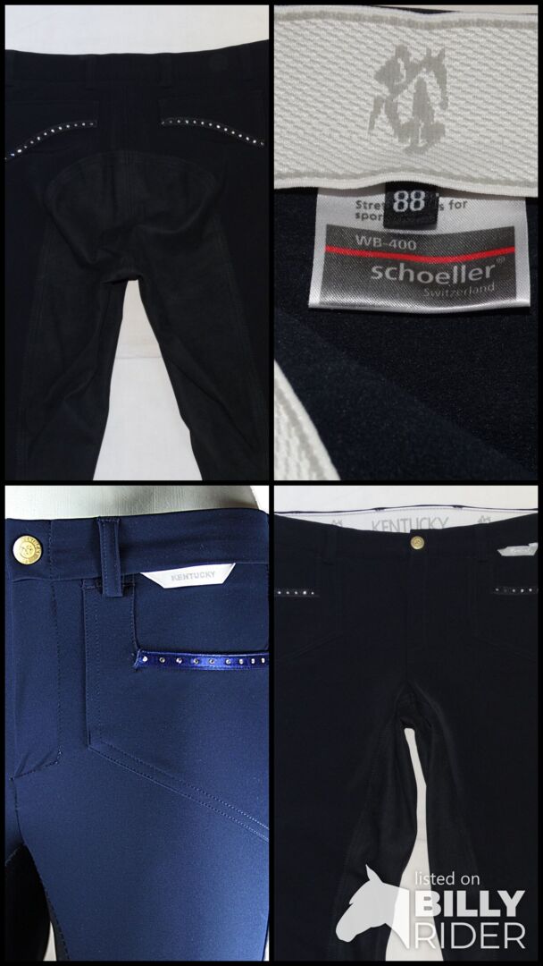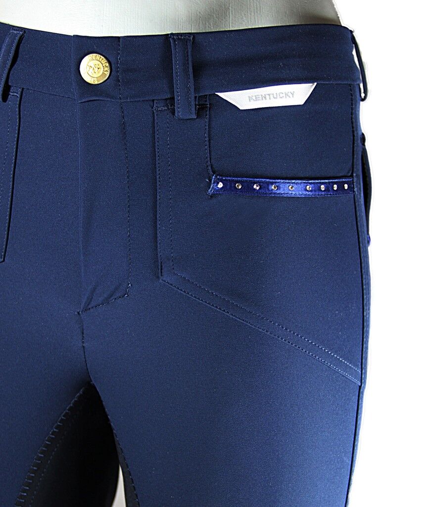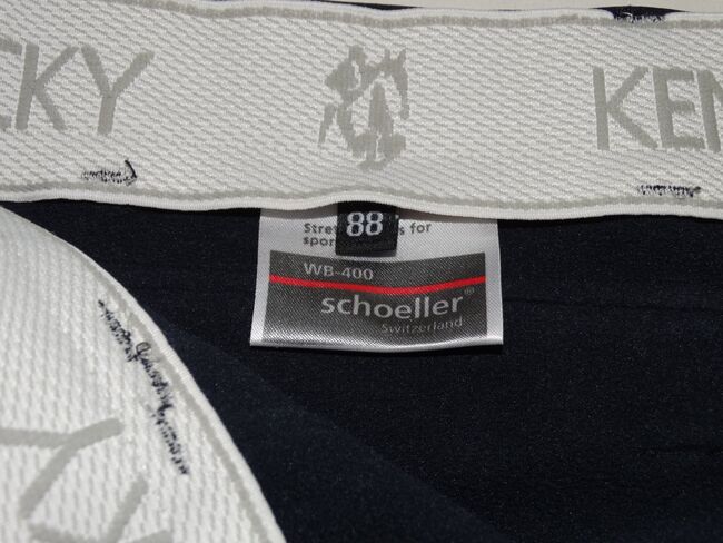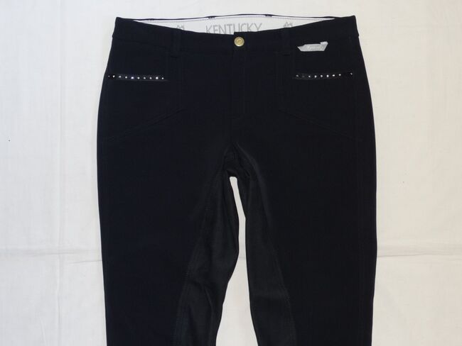 Zimowe bryczesy jeździeckie Kentucky City Strass softshell z pełnym siedziskiem 88/44Long Schoeller WB-400* imitacja skóry - Mało noszone damskie bryczesy jeździeckie Kentucky City Strass winter softshell full seat dla przyjaciółki. Rozmiar 88/44Long. Kolor czarny (ostatnie trzy zdjęcia pokazują je w kolorze niebieskim).