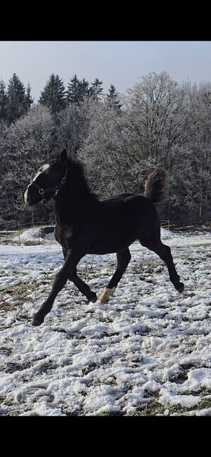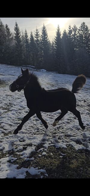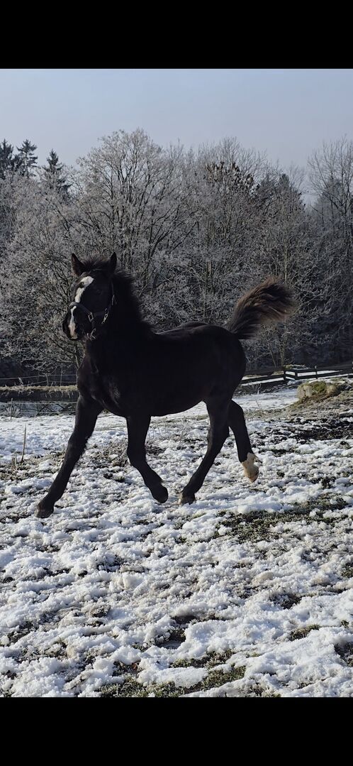 Taurus jest szczególnie ciekawskim, zorientowanym na ludzi źrebakiem, który chętnie się uczy. Od drugiego tygodnia życia towarzyszy swojej matce w terenie, również jako koń wierzchowy na smyczy. Pilnie bierze udział w źrebięcym ABC - haltering, kopytowanie, pielęgnacja - wszystko działa bardzo dobrze. Z dumą niesie nawet siodło matki do stajni.