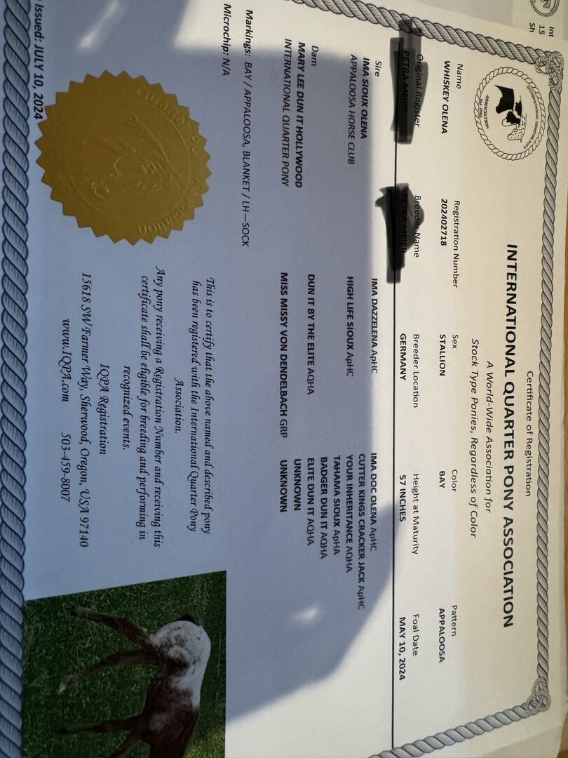 Sire is Appaloosa Ima Sioux Olena Suberior HB at APHCG has IMA Dazzelena/Doc Olena/Doc Bar in the pedigree on paper