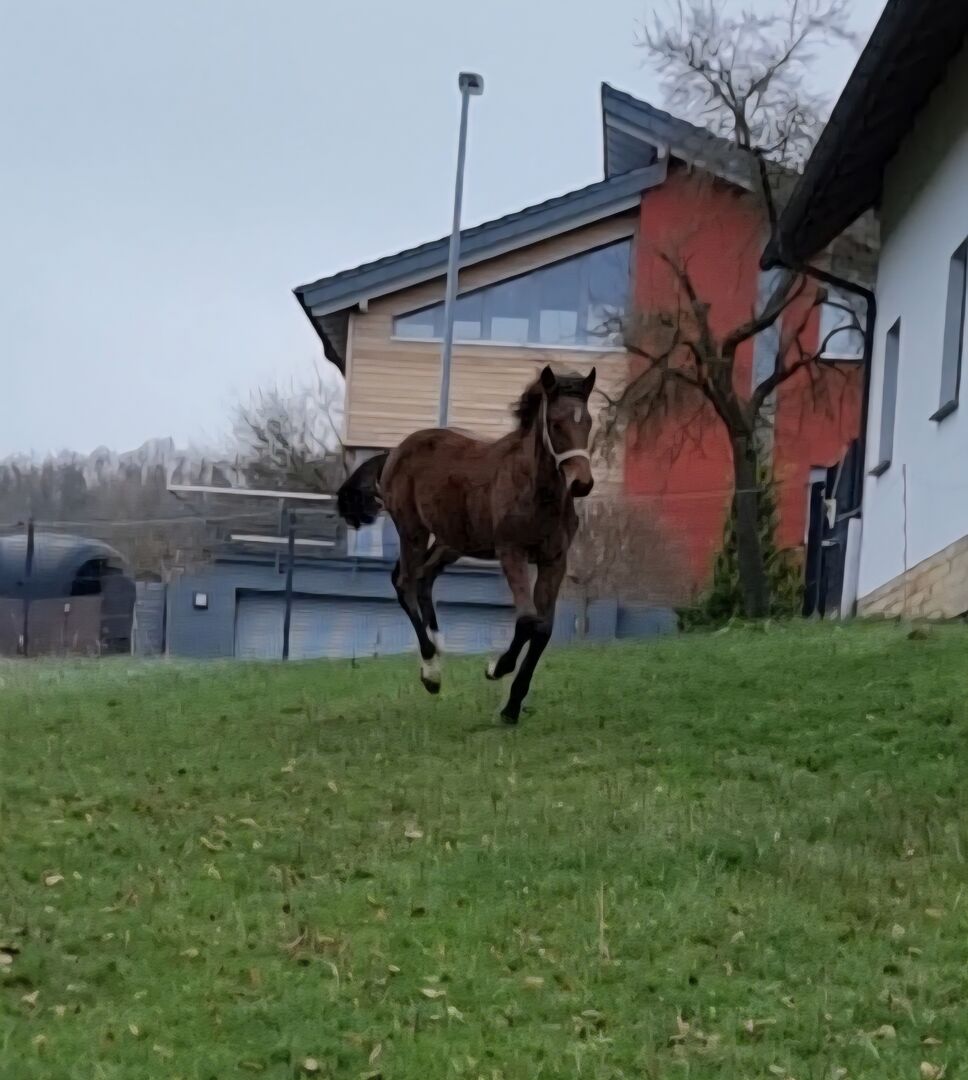 Źrebię rasy holsztyńskiej, roczniak po Million Dollar x Comme il faut - W ofercie znajduje się nagradzany, piękny ogier holsztyński po Million Dollar x Comme il faut x Caretano z linii 104A o silnym wyrazie i ruchu.